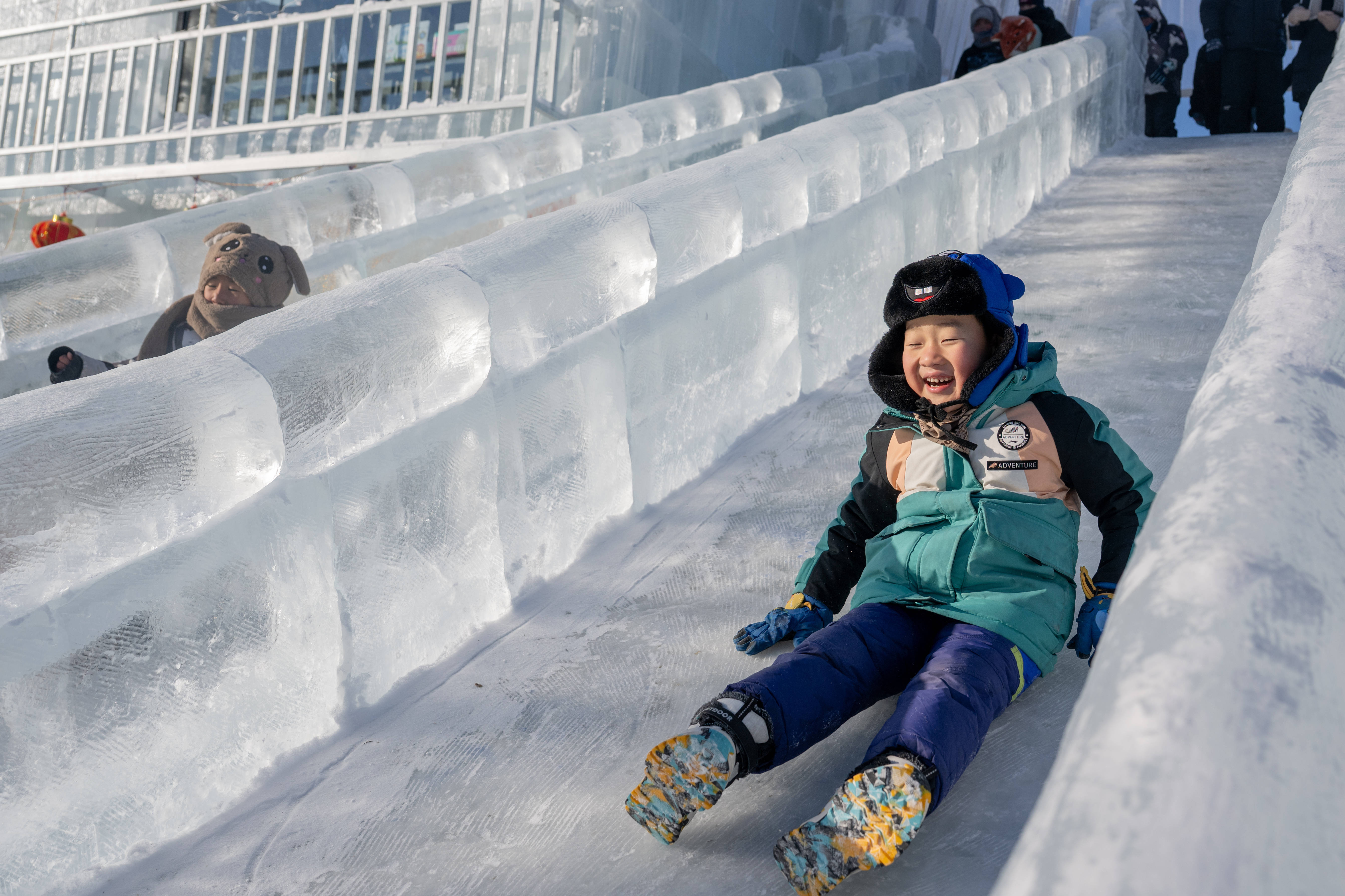 12月21日,孩子们在冰雪那达慕开幕式上滑冰梯。新华社记者 连振 摄近日,内蒙古教育厅下发了一份