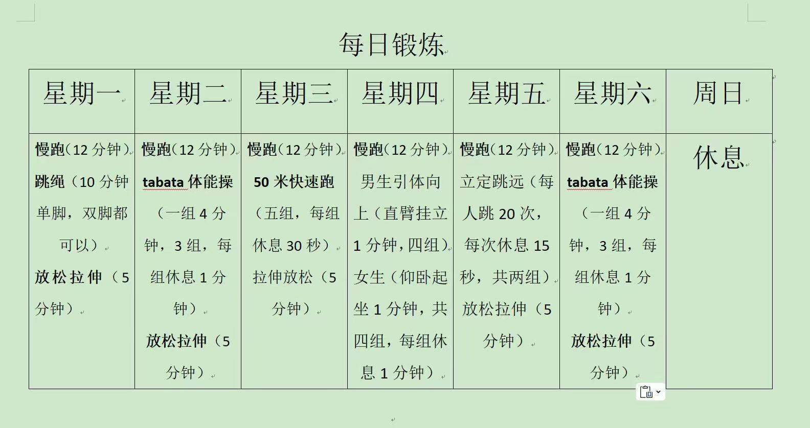 这份寒假体育作业